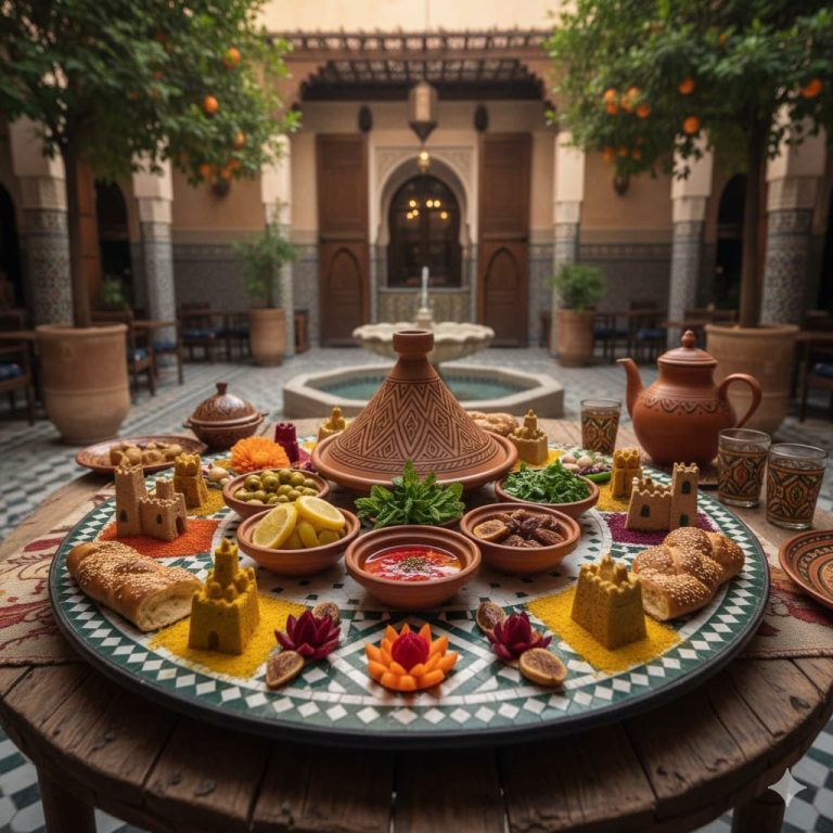 Moroccan cuisine is a feast for the senses. Savor slow-cooked tagines infused with saffron and preserved lemons, flaky pastilla pastries dusted with cinnamon, and mint tea poured with ceremonial flair. After a day on the greens, unwind with a sunset dinner under the stars, where every bite tells a story of centuries-old spice routes and family recipes.